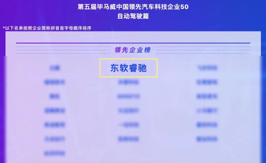 2022年4月14日,畢馬威(KPMG)發(fā)布第五屆畢馬威《中國(guó)領(lǐng)先汽車科技企業(yè)50》自動(dòng)駕駛篇,在中國(guó)汽車產(chǎn)業(yè)向智能化加速發(fā)展的趨勢(shì)下,東軟睿馳憑借在SDV領(lǐng)域的持續(xù)布局和技術(shù)創(chuàng)新成果,連續(xù)三年榮登“中國(guó)領(lǐng)先汽車科技企業(yè)50強(qiáng)”榜單。