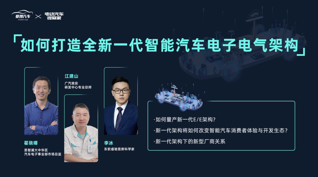近日,東軟睿馳首席科學(xué)家李冰、廣汽埃安研發(fā)中心專業(yè)總師江建山、恩智浦大中華區(qū)汽車電子事業(yè)部市場總監(jiān)翟驍曙一同受邀參加《賽博汽車》&《電動(dòng)汽車觀察家》 “如何打造全新一代智能汽車電子電氣架構(gòu)”主題研討會,三位專家對E/E架構(gòu)的域融合趨勢演進(jìn)、從概念到量產(chǎn)中OEM與軟硬件供應(yīng)商遇到的挑戰(zhàn)及落地過程實(shí)踐經(jīng)驗(yàn)進(jìn)行分享交流。