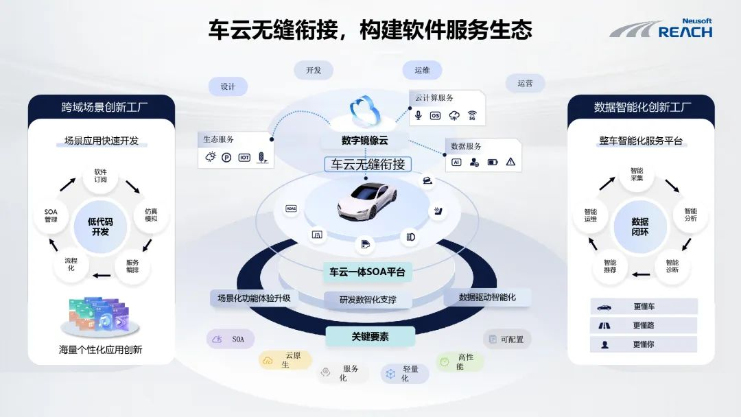 東軟睿馳基于車云一體化、低代碼、輕量化、服務(wù)化、引擎化的設(shè)計(jì)理念,構(gòu)建面向車-云融合的整車全棧軟件平臺及工具鏈,賦能廣汽構(gòu)建完整、高效、易用的軟件開發(fā)框架及系統(tǒng)軟件平臺產(chǎn)品和服務(wù)。