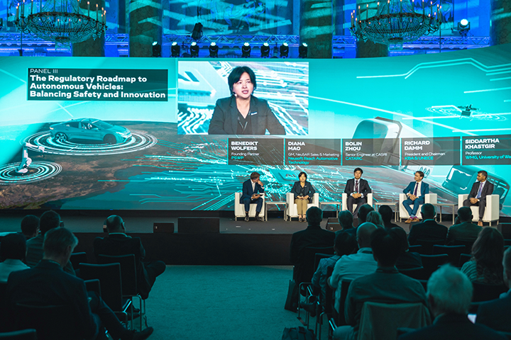茅海燕在討論中分享了作為行業(yè)SDV領(lǐng)域的技術(shù)代表,對(duì)L3/L4級(jí)別自動(dòng)駕駛領(lǐng)域的安全架構(gòu)以及全球跨區(qū)域法規(guī)合作的見解,倡導(dǎo)建立全球協(xié)同驗(yàn)證標(biāo)準(zhǔn)的監(jiān)管框架、鼓勵(lì)功能導(dǎo)向技術(shù)創(chuàng)新,將法規(guī)制定與商業(yè)模式、資本風(fēng)險(xiǎn)管控相結(jié)合,同時(shí)對(duì)基于人工智能的自適應(yīng)、持續(xù)學(xué)習(xí)等非確定性技術(shù)架構(gòu)進(jìn)行監(jiān)管包容,在確保安全底線的前提下加速技術(shù)創(chuàng)新,以推動(dòng)自動(dòng)駕駛的規(guī)?;c產(chǎn)業(yè)化落地。汽車作為全球化產(chǎn)業(yè),需要國(guó)際化的標(biāo)準(zhǔn)協(xié)同,中國(guó)在智能網(wǎng)聯(lián)汽車產(chǎn)業(yè)的快速發(fā)展源于長(zhǎng)期戰(zhàn)略投入,東軟睿馳期待通過全球合作共享經(jīng)驗(yàn),促進(jìn)成本優(yōu)化與效率提升,共同推動(dòng)全球智能汽車產(chǎn)業(yè)實(shí)現(xiàn)規(guī)模化可持續(xù)發(fā)展。